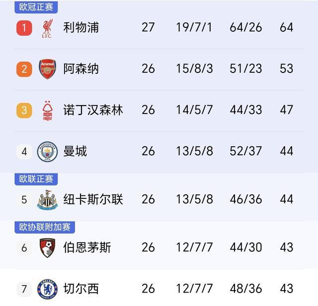 此战事后,多赛1场的利物浦27轮积64分,陆续领跑英超积分榜,起始第2的阿森纳多达11分,起始第3的诺丁汉丛林17分,领跑积44分的曼城已有20分!