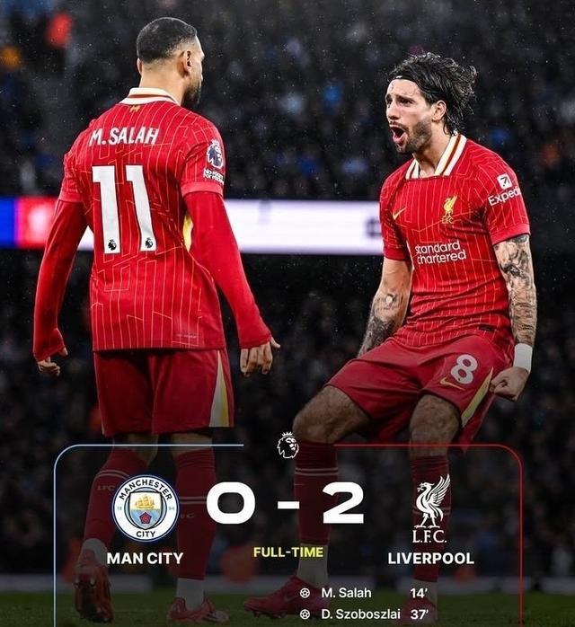全场放浪,比分锁定在0-2,利物浦客场2球双杀曼城,时隔9年再次双杀,亦然英超时间的第3次!