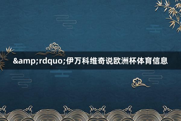 ”伊万科维奇说欧洲杯体育信息