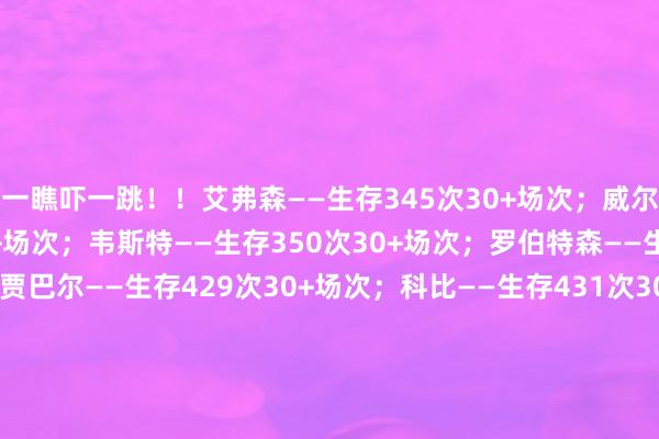 一瞧吓一跳!!艾弗森——生存345次30+场次;威尔金斯——生存346次30+场次;韦斯特——生存350次30+场次;罗伯特森——生存387次30+场次;贾巴尔——生存429次30+场次;科比——生存