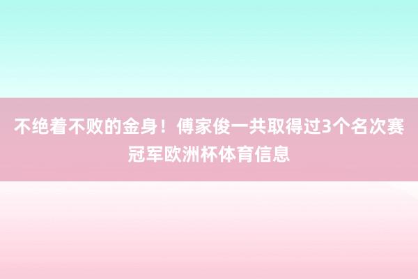不绝着不败的金身!傅家俊一共取得过3个名次赛冠军欧洲杯体育信息