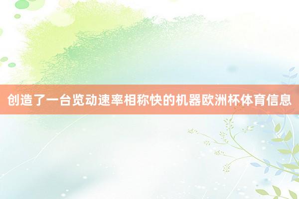 创造了一台览动速率相称快的机器欧洲杯体育信息
